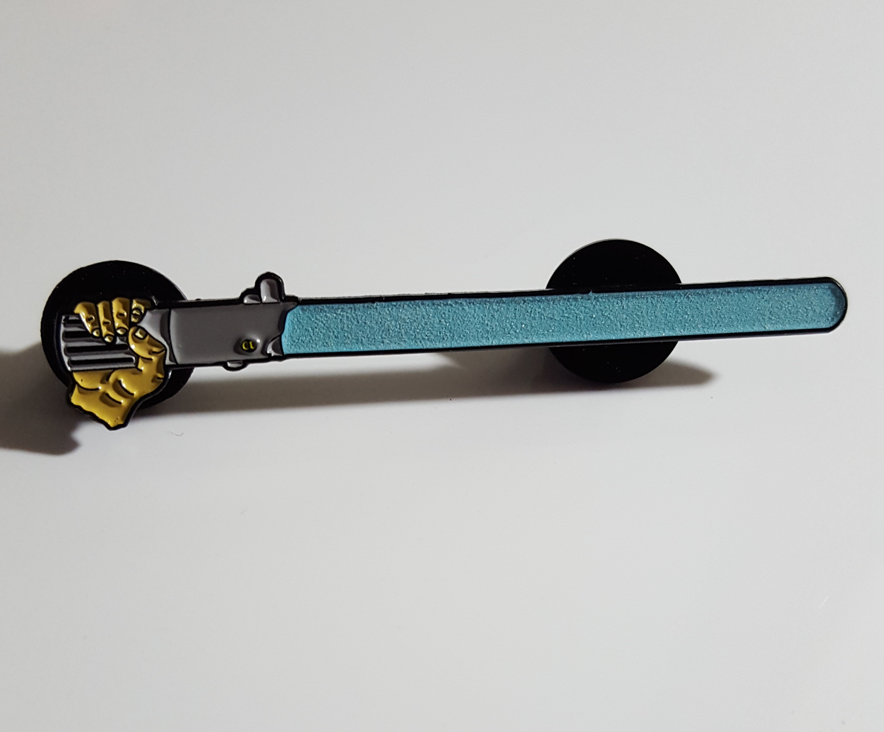 55mm long soft enamel pin.